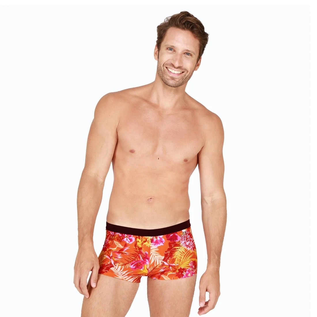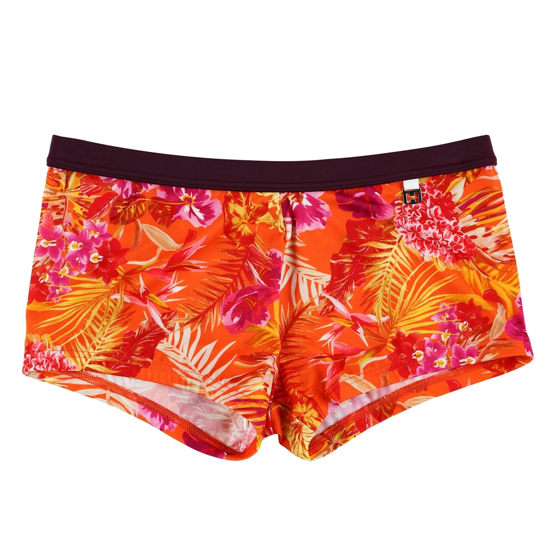 Boxer de bain hommes imprimé fleuri fond orange de la marque HOM