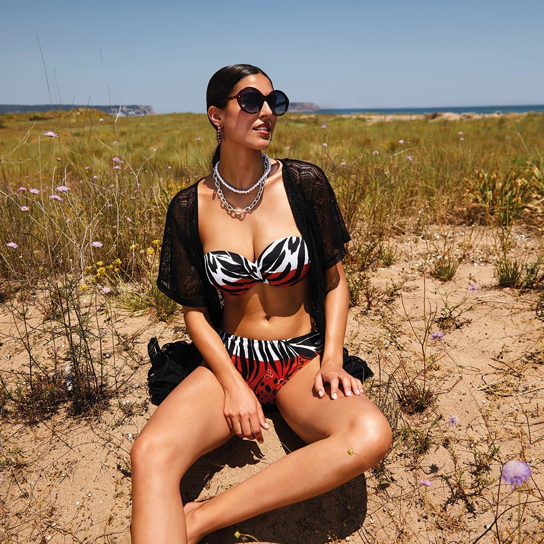 C’est un joli imprimé animalier orange noir et blanc. Ce maillot de bain est très élégant et féminin